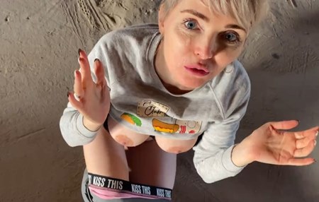 Машет у лица русской милфы самотыком, который типо нашел у неё дома и теперь будет милфу трахать.