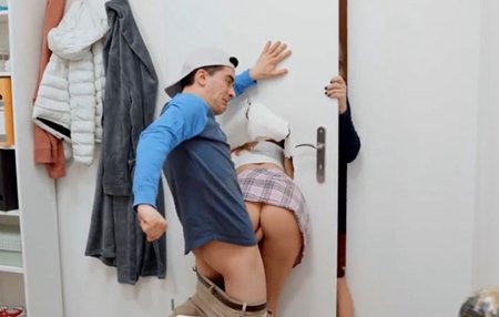 Батя вернулся домой когда сынок наяривал по жопе их сочной соседке и вдувает ей со второго ствола.